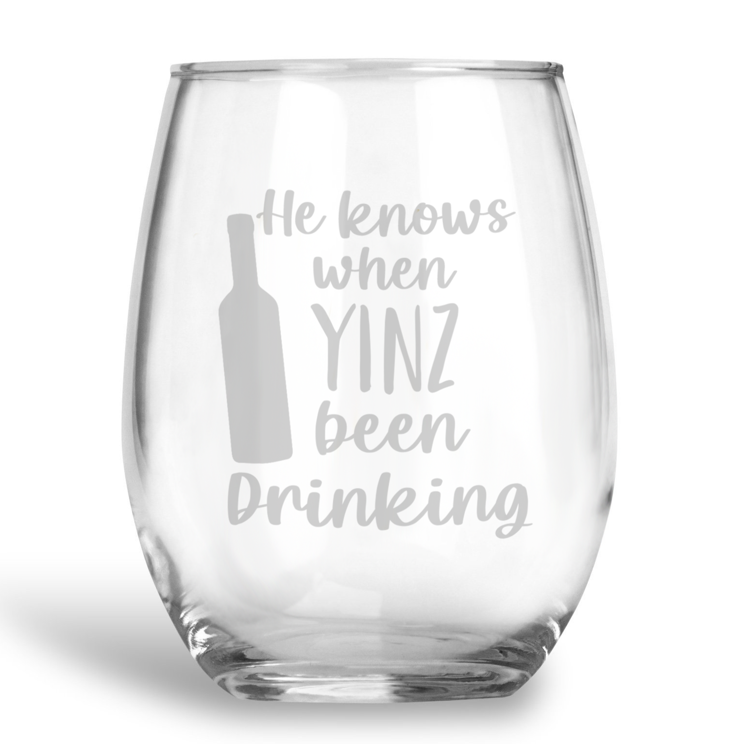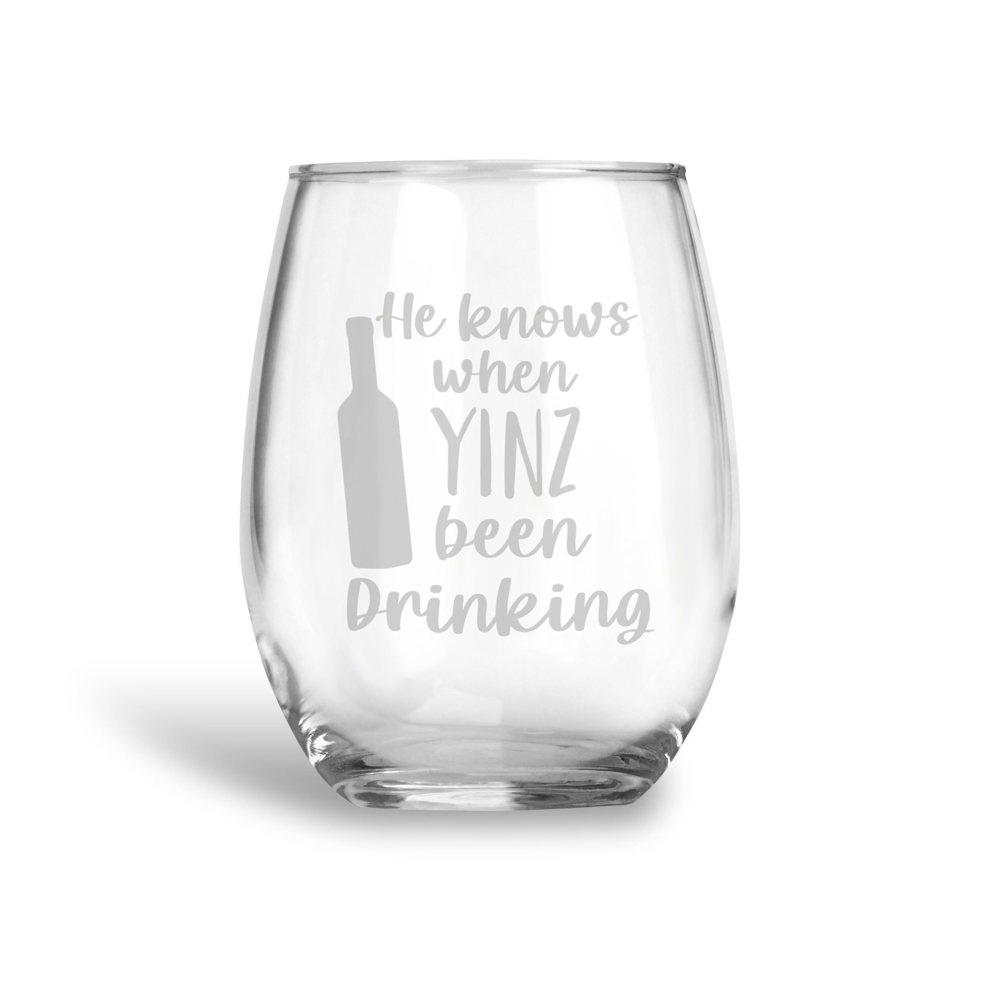 He Knows if Yinz Been Drinking, Stemless Holiday Wine Glass