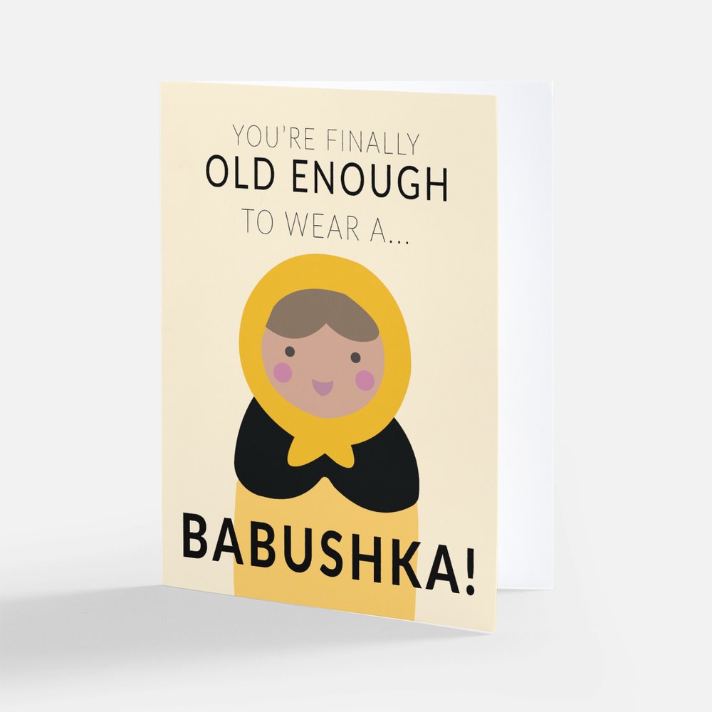 My great aunt of Polish descent turns 100 years old in November. Since she has a fun sense of humor, I wanted to get her a humorous card that stood out. This card was perfect! The owner was awesome to work with and she even wrote me a personal note about my aunt. I was very happy with my purchase . PS I am wrapping my aunt’s gift in a babushka to go with the sweet card!